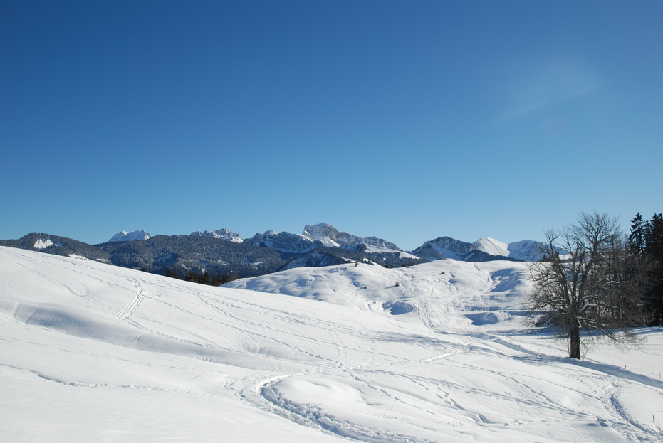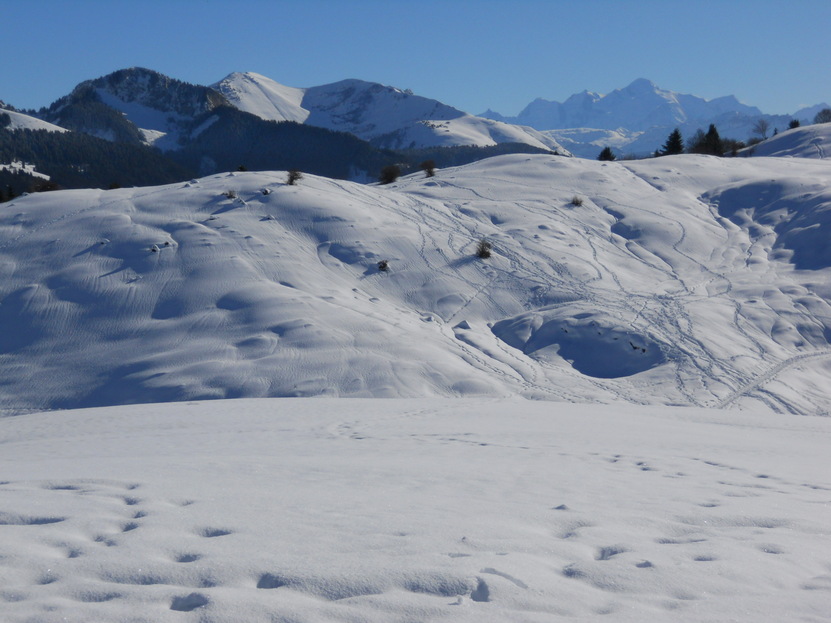 Le plateau de Gavot en hiver 2008,La Dent d'Oche, nous abordons ici la première montagne du Chablais, sommet à 2221m, de beaux spécimens de la faune alpine la peuplent, chamois et bouquetins